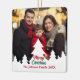 This chic, modern family photo double sided Christmas ornament features your annual holiday photograph framed by a bottom border of white Christmas trees silhouette. Personalise with red and green script for a beautiful minimalist photograph Christmas gift with a 2nd photograph on the back.
