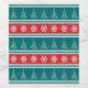 Merry Christmas illustration with Christmas tree and snowflakes decoration on red, white, blue and turquoise striped background