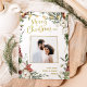 Merry Christmas | Winter Floral and Photo and Gold Holiday Card