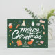 Embrace the festive spirit with our Merry Christmas Hand-Lettered Greeting Card, a perfect blend of holiday cheer and heartwarming design. The dark green background sets the stage for a winter wonderland, adorned with whimsical hand-lettering that spells out "Merry Christmas."
