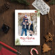 This design features Merry Christmas modern cute, watercolor red holly berries rustic, Christmas holiday red holly berries, family one 1 photo picture, botanical pine branched twigs, simple minimalist whimsical typography, modern trendy stylish calligraphy script, elegant greenery winter foliage, Christmas holiday photo greeting cards, modern elegant simple trendy, modern calligraphy script font, merry Christmas calligraphy script font