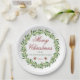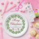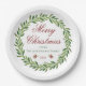 Beautiful minimalist greenery wreath "Merry Christmas" customisable paper plates.