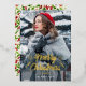 This elegant real foil Christmas greeting card features one full photo with Merry Christmas typography and botanical elements on the front, and a beautiful watercolor berry botanical holiday pattern on a creamy ivory white background.