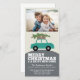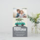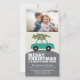 A modern Holiday greeting with an illustration of a car moving gifts and a tree.