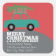 A modern Holiday greeting with an illustration of a car moving gifts and a tree.
