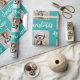 Merry Christmas with One Square Photo - blue Wrapping Paper
