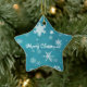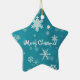 Merry Christmas with snowflakes turquoise Ceramic Tree Decoration