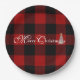 Merry Christmas with tree on buffalo plaid Paper Plate