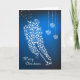 Merry Christmas female hockey player. A Christmas card for the female hockey player or fan in your life. This design features a blue night sky with white snowflakes shaping the silhouette of a girl hockey player. Merry Christmas is in a script font.