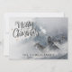 A beautiful merry Christmas nature holiday card featuring woodlands wolves howling in the winter snow. Personalize with your family name.