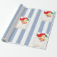 Merry Christmas Wrapping Blue & White Stripe Santa Paper