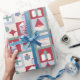 Merry Christmas! wrapping paper in red + blue + green colour combo! Make your next holiday gifts stand out with this beautiful wrapping set!