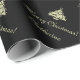 Merry Christmas wrapping paper and custom greeting | Decorated Xmas tree design. Personalizable gift wrap idea with custom name and Holidays message. Customisable black background colours and elegant faux gold greeting message. Surprise your family; father, mother, grandpa, sister etc.. with personalised seasons greetings.