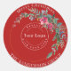 Merry Christmas Wreath Custom Logo Round Sticker. Create your own customisable logo sticker with this Merry Christmas theme, featuring a holiday gold wreath and vibrant holiday flowers. Add your business logo to make it unique with your personalised branding. These round stickers are perfect for labelling gifts, envelopes, packages and more. Add a touch of holiday spirit to any gift or package. These stickers will enhance the presentation of your holiday greetings or gifts and leave a memorable impression. The customisable logo reflects your brand identity and adds a professional touch to your business communications.