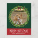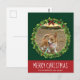 Merry Christmas Wreath Cute Custom Dog Photo Green Postcard