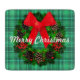 Merry Christmas Wreath Plaid Retro Holiday Cutting Board
