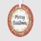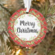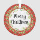 Merry Christmas Wreath Retro Red Classic Round Ornament