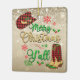 Dress Up Your Christmas Tree and Personalise this Comical "One of a Kind" Merry Christmas Y'all Christmas Ornament! It Features a Cowgirl Hat and Cowgirl Boots in Red and Black Plaid with Green and Gold Glitter Highlights on a Gold Christmas Background and the Festive Quote...."Merry Christmas Y'all"!