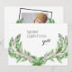 Christmas Greeting Card. "Merry Christmas ya'll. Photo on back. Family names. Christmas Foliage Antlers.