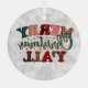 Merry Christmas Y'All Plaid Text Glass Tree Decoration