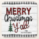 Merry Christmas Y'all Rustic Plaid Trees Name Square Paper Coaster