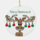 Celebrate the festive holiday season with this "Merry Christmoose" cartoon ceramic ornament.