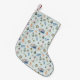 Coastal and nautical-themed Christmas stocking featuring lobsters, lighthouses, fishing boats and more. Perfect for those who love the east coast and want a unique touch to their holiday gifts. Ideal for Christmas, winter celebrations, and anyone with a love for coastal decor.