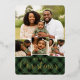 Festive holiday photo card features four of your favourite images arranged in a collage layout. "Merry Christmas" appears beneath in gold foil lettering, along with your names and the year, on a green buffalo plaid background.