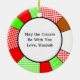 Personalized Christmas ornament. On the front is a disk golf pen and the pun Merry Course-mas. On the back is a pop art style background with a place for you to leave a personal message.
