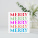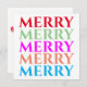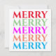 This colourful Christmas holiday card features the word "MERRY" in five bright colours on the front and the words "May your holidays be merry days!" on the back. This is a fun card for the holidays! Copyright Kathy Henis