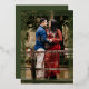 Announce your engagement to your friends and family this holiday season with our elegant minimal green and gold photo frame engagement holiday card. Add a full photo to the front of the card to announce your engagement. "Merry & Engaged" photo overlay displayed in rose gold foil, along with the couple's name and year. Designed by Moodthology Papery