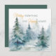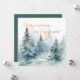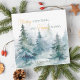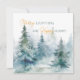 Watercolor winter trees in shades of green paired with script and modern typography holiday card.