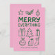 Merry Everything Pink Green Doodle Sketch Add Name Holiday Card