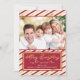 Bright colourful Merry Everything Christmas photo card featuring a festive red & faux gold foil diagonal stripe background with contemporary "merry everything" hand lettered font.