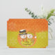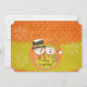 Colourful snowman couple design holiday greeting card features a snowman in black top hat and orange scarf, snow lady in orange and mustard winter hat and striped winter scarf on a background of polka dots on mustard and orange with typography text that reads Merry Christmas with a few soft snowflakes. Text on front reads Merry Everything! You can easily customise the back with your own text! This card is part of a suite so look for the matching envelope, stickers, postage stamps, and return address labels!