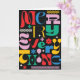 The Merry Everything Trendy Type Mix Greeting Card is a vibrant and cheerful way to express festive wishes with a touch of retro flair. This folded card features a playful mix of typefaces in bright colours against a sleek black background, creating a fun and eye-catching design.