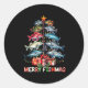 Merry Fishmas Funny Christmas Tree Lights Fishing Classic Round Sticker