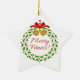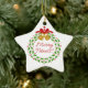Merry Fitness wreath with kettleBells personalised ceramic Christmas star ornament! This double sided circle ornament design features a holiday wreath with kettlebells and a red bow! Personalised it with a name and the year for a great keepsake! Perfect addition to your ornament collection or a gift for anyone who is into fitness! For other holiday matching items with this design or other great fitness themed gifts please visit our shop!