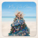 Celebrate the holidays with these gorgeous tropical-themed Christmas paper coasters. The design is a photo image of a stunning Christmas tree featured at the Orlando Museum of Art during the annual Festival of Trees exhibit. The beautiful holiday tree is adorned with coastal-inspired decorations including starfish, miniature mermaids, soothing pastel-coloured ornament balls in blue, green, and ivory, and a large fish with branches of coral for the tree topper. The background is a calm beach landscape. The text reads "Merry Florida Christmas." Choose from various shape options. Sold in sets of 6. Please browse our complete collection of coastal, tropical, and Florida-themed holiday cards and gifts. Special design requests accepted. (Photography and design by Glenda Motsavage.)