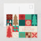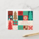 This design combines geometric shapes and holiday symbols like trees and snowflakes in vibrant colours. Perfect for sending modern Christmas wishes, it captures the spirit of the season with a bold, artistic flair.