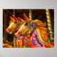 A pair of Merry-go-round horses photographed in vivid colourful retro "film" mode rekindling the magical spectacular living colours of 1960/70s colour transparency films.