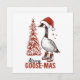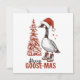 Cute "Merry Goose-mas" design depicts a cute goose wearing a Santa's hat, red boots, and a Christmas tree in the background. This colorful and eye-catching xmas goose design makes a nice Christmas gift for anyone who likes geese, animals, and funny Christmas images.