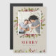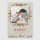 Affordable custom printed magnetic photo cards with simple templates for customisation. This festive design features an elegant watercolor floral border of holly leaves and poinsettia flowers in red, green and burgundy colours on a faux linen burlap background. Personalise it with your photos and custom text. Reverse side has a custom holiday greeting or use the space to add additional photos. Use the design tools to choose any background colours, edit the text fonts and colours, upload more photos and create a one of a kind holiday photo card magnet.