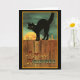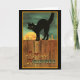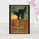 An Ellen H.Clapsaddle designed vintage Halloween greeting card showing a black cat on top of a fence with the moon peeping behind her.