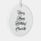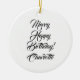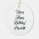 Merry Happy Birthday custom elegant script text Christmas Ceramic Ornament.