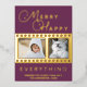 Merry Happy Stylish 2 Photo Word Art Purple Gold Foil Holiday Postcard