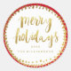 Merry Holidays Trendy Gold Script Custom Red Classic Round Sticker