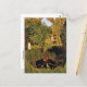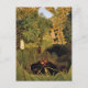 A fine art postcard featuring the painting Merry Jesters (1906) by the French artist Henri Rousseau (1844-19100). The artwork depicts a jungle landscape with gorillas embracing in the bushes, rendered in the primitive art style.