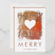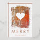 Merry Jolly Artistic Heart Painting Christmas Gold Foil Holiday Card. Painted heart in orange and red colours with happy, jolly, merry in gold foil. Add your family name and message on the backside.