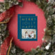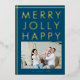 Modern Merry Jolly Happy Blue Family Photo Christmas Gold Foil Holiday Card. Happy, jolly, merry in gold foil on a dark blue background. Add your family photo and name.